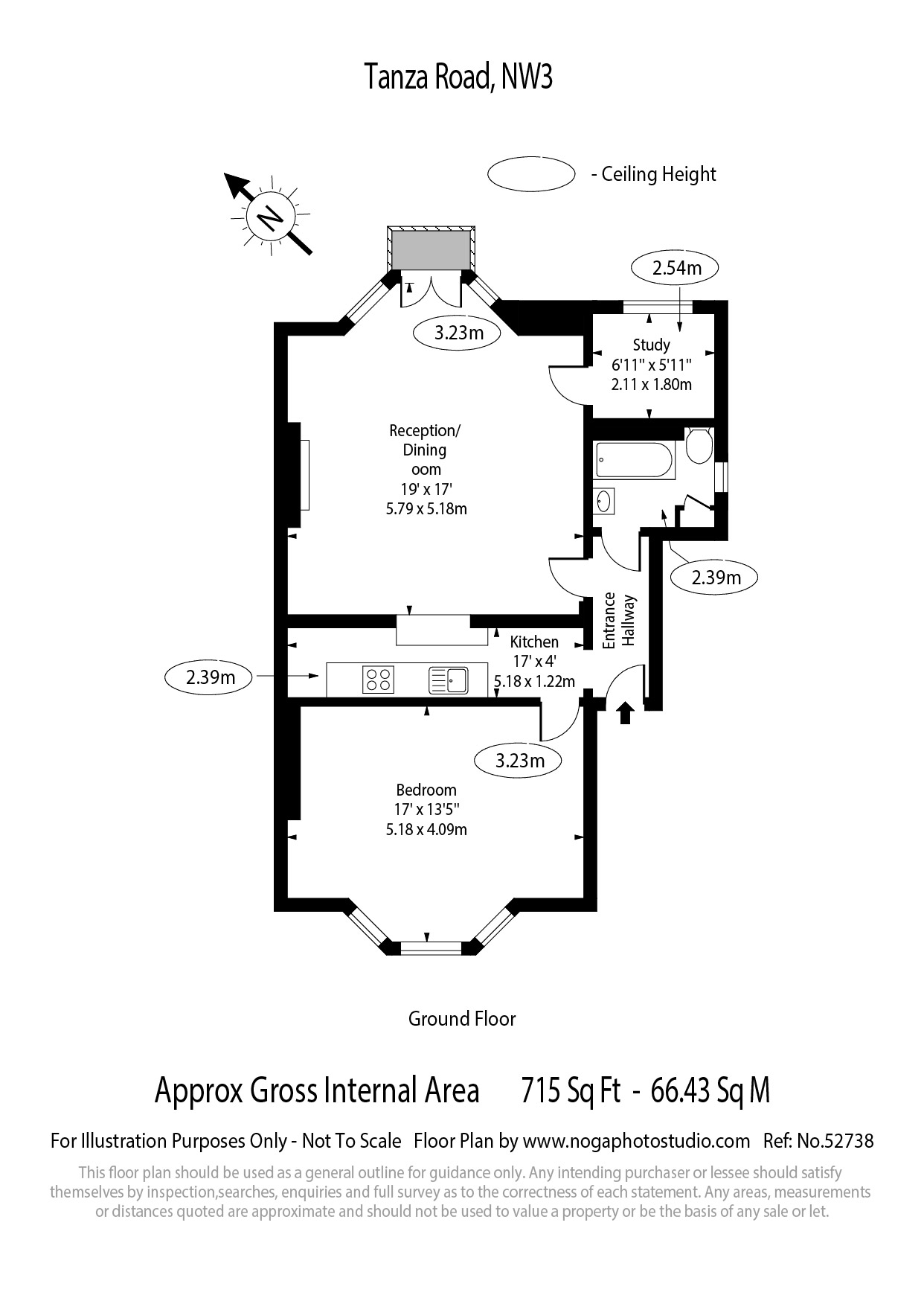 A bright, two bedroom raised ground floor flat (715 Sq Ft - 66.43 Sq M), with beautiful original features, high ceilings, elegantly proportioned rooms, and a private balcony overlooking Hampstead Heath.